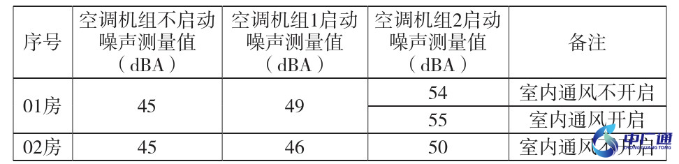 根據(jù)現(xiàn)場(chǎng)檢測(cè),中央空調(diào)啟動(dòng)時(shí),01房間內(nèi)有明顯的可聽(tīng)結(jié)構(gòu)聲,并且艙壁板也感受到明顯的振動(dòng)。經(jīng)現(xiàn)場(chǎng)噪聲測(cè)量可看出,01房間噪聲受2號(hào)機(jī)組的影響較大。