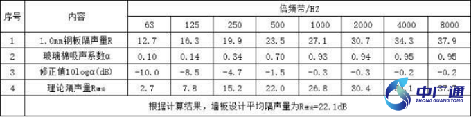 據(jù)上述計算,隔音板理論平均隔聲量不低于 22. 1dB ,滿足設(shè)計要求。
